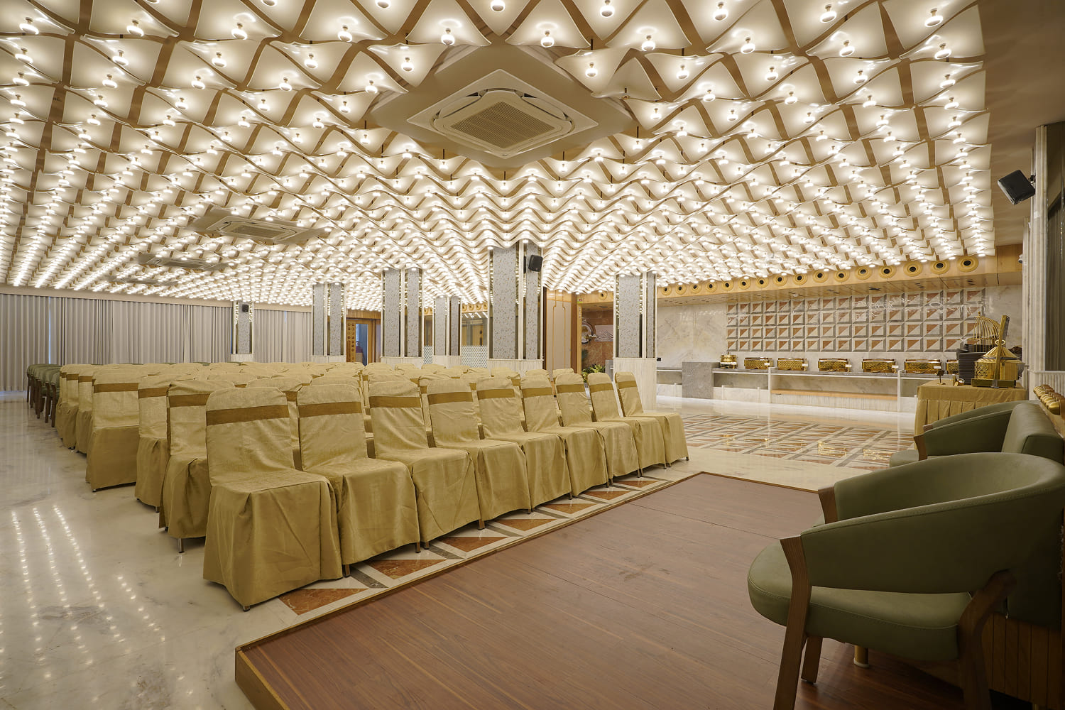 Our spacious and well-equipped banquet hall features refined interiors, modern amenities, and a dedicated team that ensures every detail is handled with care. From intimate gatherings to lavish celebrations, we tailor the venue setup and custom Veg. and Non-Veg. menu to match your vision and taste.